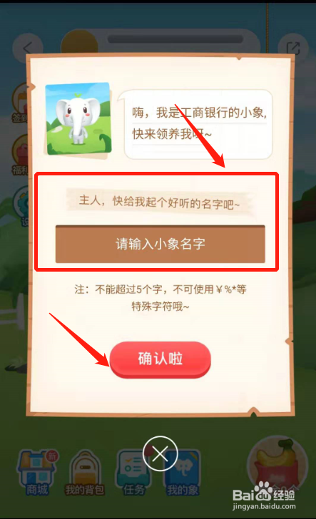 登录App后,输入小象的名字,点击“确认啦”。