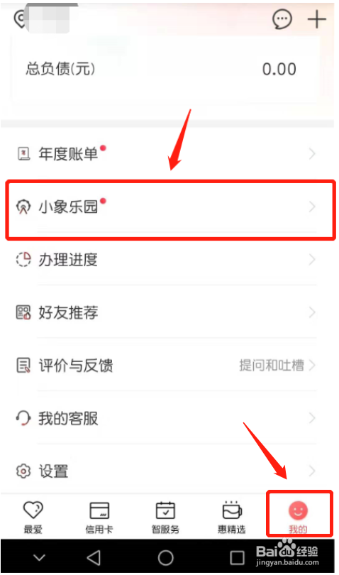 进入工商银行App首页,然后点击“我的”,然后点击“小象乐土”。