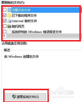 在要删除的文件列表框,勾选要删除的选项然后点击清理系统文件按钮进行清理。