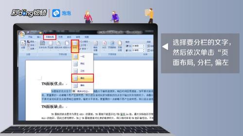 - 5点击“页面结构”、“分栏”、“偏左”。