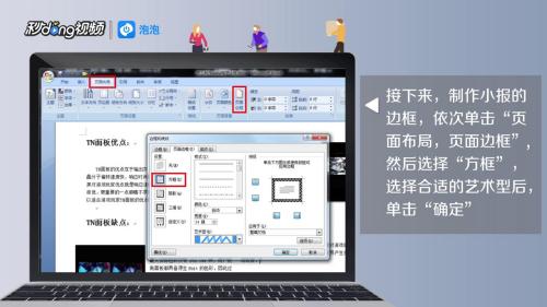 - 8单击“页面结构”、“页面边框”,选择“方框”,选择合适的艺术框后点击“确定”。
