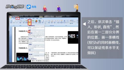 - 9依次点击“插入”、“外形”、“直线”在两部门之间画出边界即可。