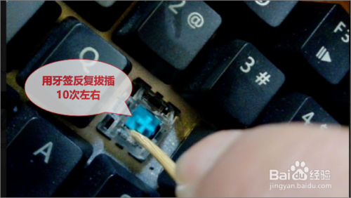 然后我们用该牙签对轴体的小缝频频拔插10次摆布就可以了,完当作后安装上键帽