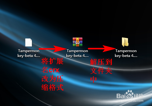 从第三方网站下载的插件需要别的设置一下,好比我要安装“Tampermonkey”这个插件。首先将文件后缀.crx改当作.rar等压缩格局,再将其解压到同名文件夹中,如下图所示: