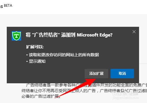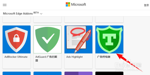 在打开的“Microsoft Edge Addons”网站中选择一个需要安装的插件,点击进入,好比我选择安装“告白终结者”插件,如下图所示: