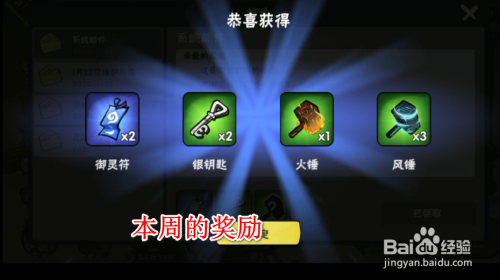 可以看到,本周的礼包是两张御灵符(新出)、两把银钥匙和一些属性锤。