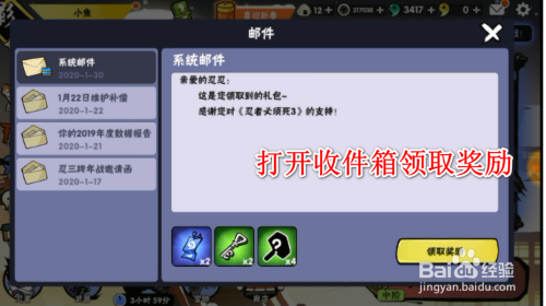 我们打开收件箱还没有礼包,进步前辈行一局游戏即可领取。
