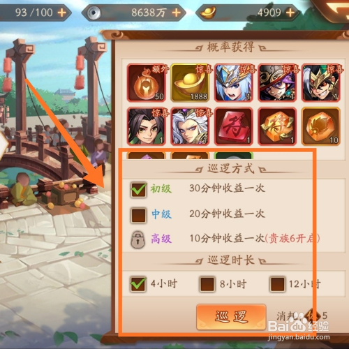 - tips:初级巡逻需要体力,中级巡逻需要元宝