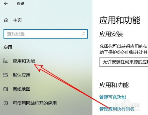 这时会打开应用设置窗口,点击应用和功能的菜单项。