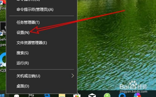 右键点击起头按钮,在弹出的菜单中选择设置的菜单项。
