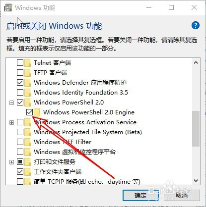 然后在打开到windows功能窗口中,找到windows PowerShell2.0的设置项。
