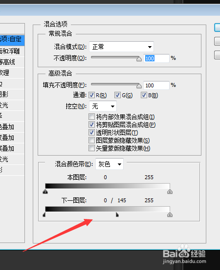 6.点击夹杂选项,按住Alt键,拖动图示处的三角标。