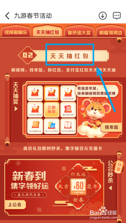 点击右下角的【找年鼠抽奖】活动