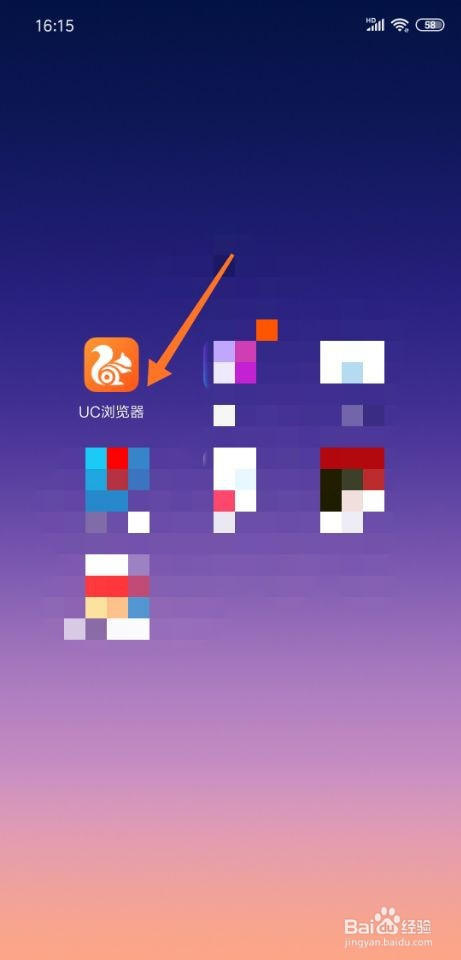 解锁手机今后,点击打开UC浏览器。