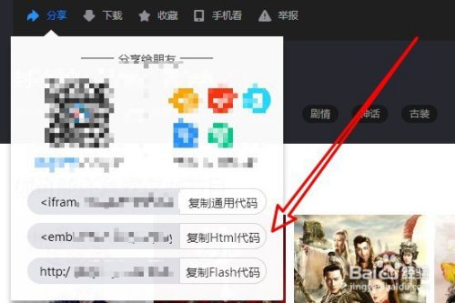 1、首先找到要插入的收集视频,点击复制代码的按钮。