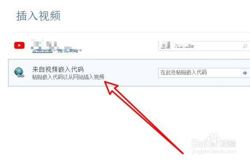 这时会打开插入视频的窗口,在窗口中选择来自视频嵌入代码设置项。