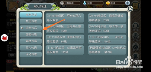 进入贴心传送后,点击抓宠传送。