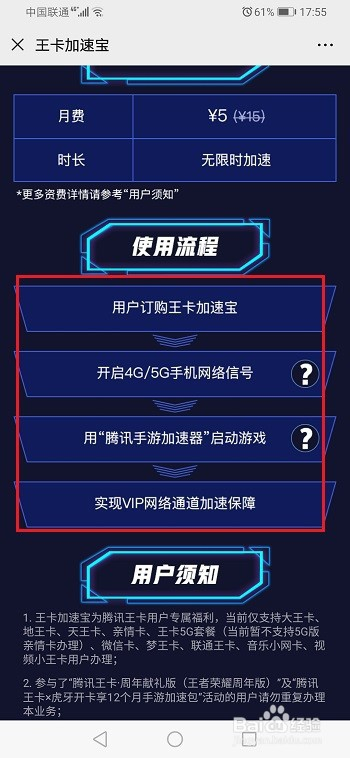 第二步王卡加快宝,需要先开通,然后开启移动数据,经由过程腾讯手游加快器启动游戏,可以降低收集延迟,如下图所示: