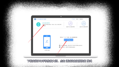 - 4下载安装“高兴手机恢复巨匠”,选择“经由过程设备扫描恢复”模式,点击“下一步”。