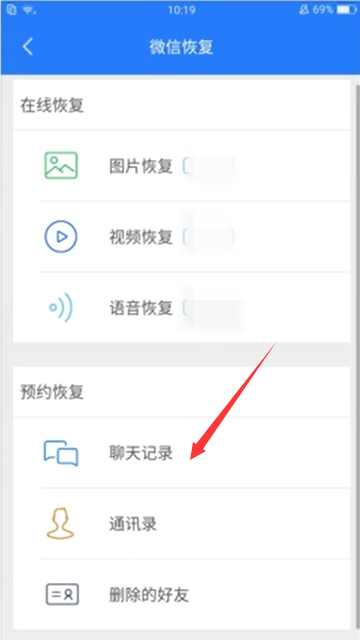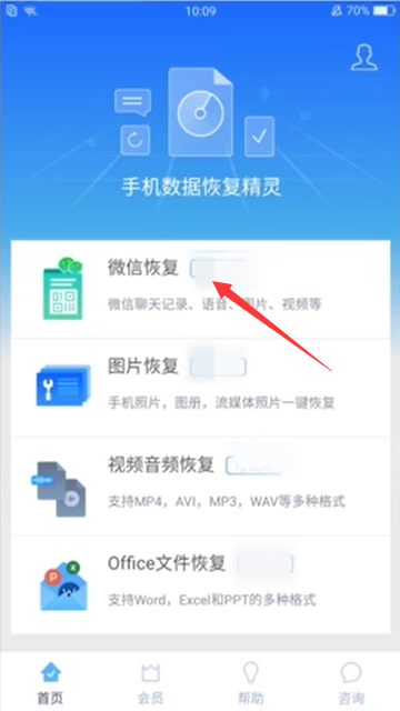 - 8打开APP后,点击“微信恢复”。