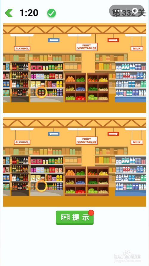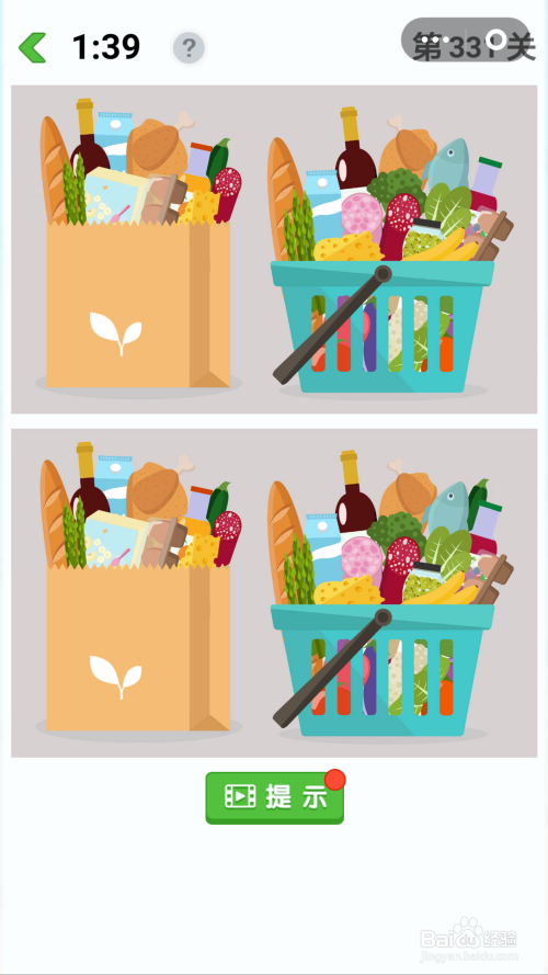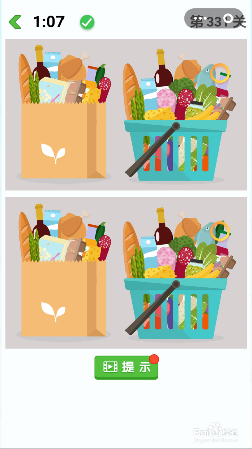由图可以看出,右侧篮子里在右上角位置,下图比上图多了一个黄瓜。