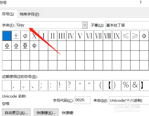 5、别的,我们还可以经由过程插入字符来输入钢筋符号,打开符号窗口,将字体改为sjqy就可以看到钢筋符号了。