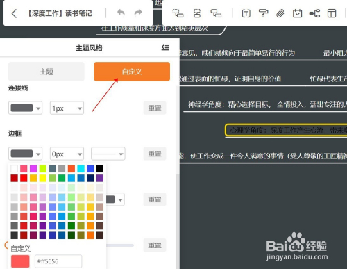 在左侧的“自界说”功能中,还可以对毗连节点线条颜色、思维导图布景颜色、节点间距、圆角等进行自界说编纂。