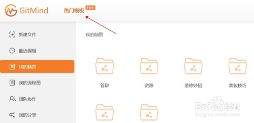 点击页面左上方的“热点模板”,进入到思维导图模板页。