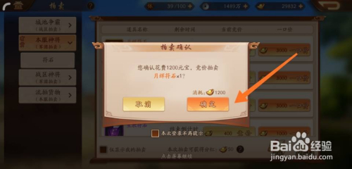 提醒是否破费几多元宝,竞价拍卖道具,点击确定。