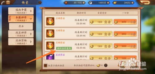 3,拍卖竣事仍是最高价,获得拍卖道具。
