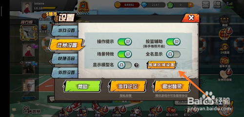 进入角逐设置后,点击按键区域设置。