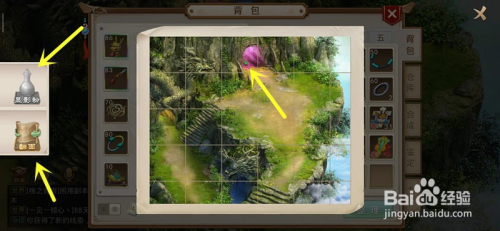 打开之后,我们会获得拼图的物品,我们按照地图来拼图,最都雅着地图来拼,先找好地图,截图放到电脑或者别的一部手机上面。拼好之后,我们点击翻面以及显影粉,在正面也利用显影粉。地图上就会呈现您要找的山公。
