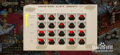 玩完之后,我们去找茅山道士,在天墉城屠娇娇旁边,来画镇尸符。在尘埃遮住的处所,本次为偶变奇不变,所以我们算出矩阵的数值,来贴镇尸符即可,本次如下。