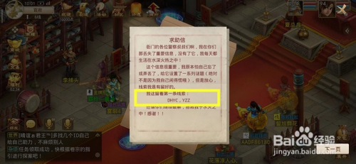 这时我们会获得一个纸条,纸条上面写的是DHYC,YZZ。其实意思就是东海渔村,玉真子,我们前去东海渔村。