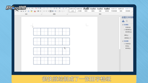 - 9按这样的体例复制一行,然后把这一行田字格再复制,很快就绘制当作了一张田字格纸,打印出来,就可以利用了。