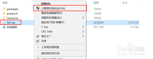 选中【Set-up】,右键选择【以办理员身份运行】。