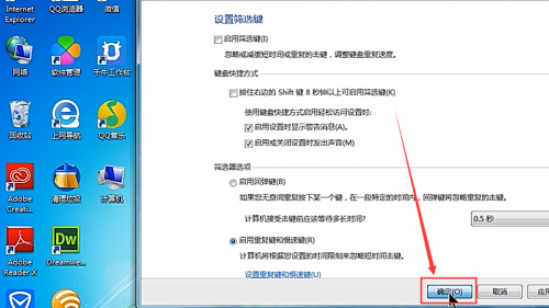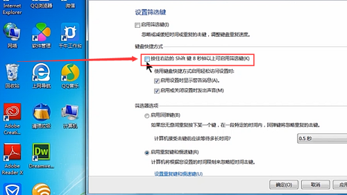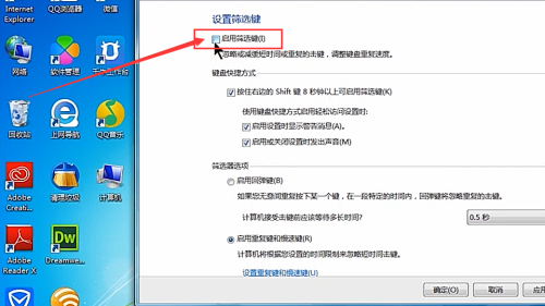 - 6打消勾选“启用筛选键”。