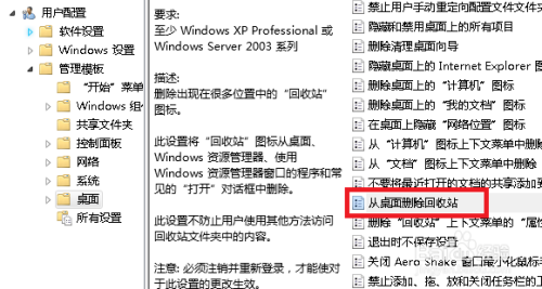 找到并双击从桌面删除收受接管站选项进入。