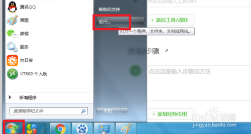 在win7操作系统桌面上,点击左下角开始菜单选择运行选项进入。
