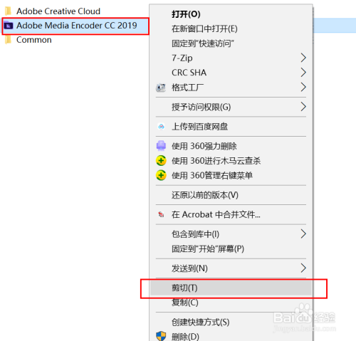 找到【Adobe Media Encoder CC2019】,右击选择【剪切】。