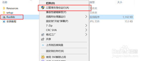 打开安装包解压后的【Adobe Media Encoder CC2019】文件夹,选中该文件夹下的【RunMe】,右击选择【以办理员身份运行】。