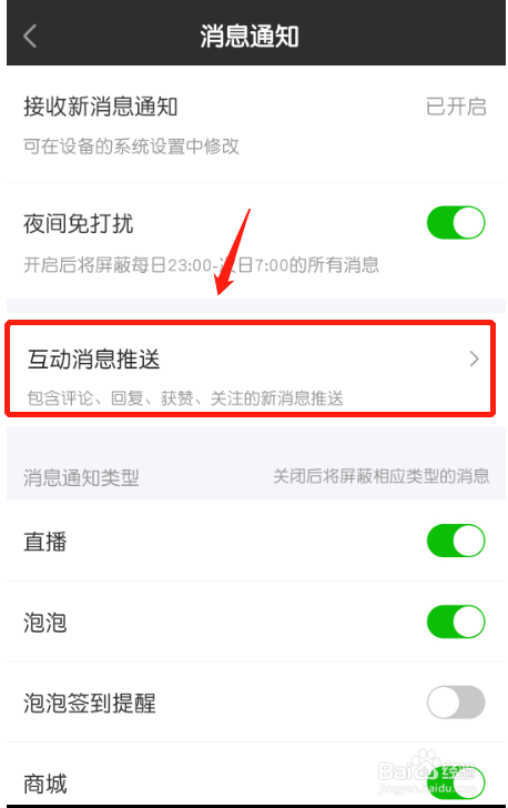 然后点击“互动动静推送”。