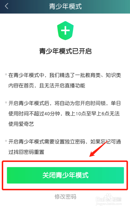 然后点击“封闭青少年模式”。