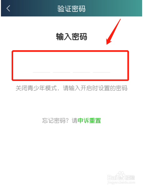 在页面内输入密码,密码输入完当作后,即可封闭青少年模式。