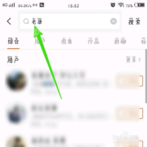 第四步,在搜索框中输入伴侣用户名,点击搜刮。