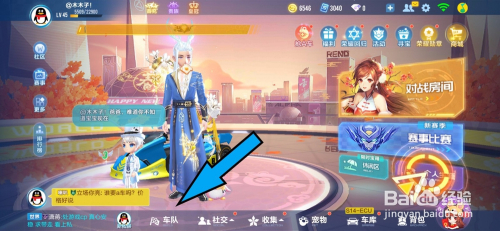 首先,我们进入到游戏的本家儿界面,我们可以看到“车队”这一选项,点击这一选项;