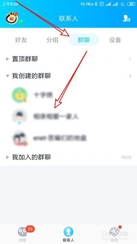 1、在手机上打开QQ,点击群聊页面中要办理的QQ群。