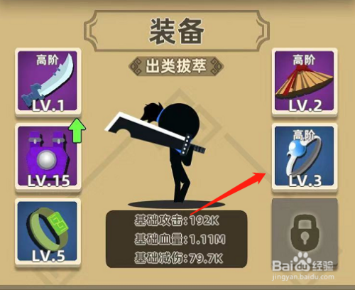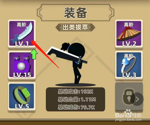 1、首先,我们要选择好装备,建议选择带暴击和持续危险的兵器。