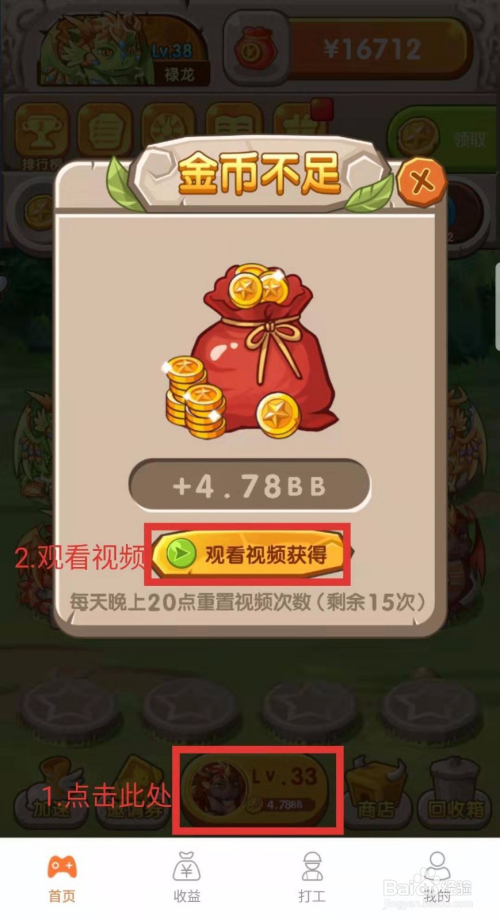 ③其次把得来的金币全数刷当作33级的龙。