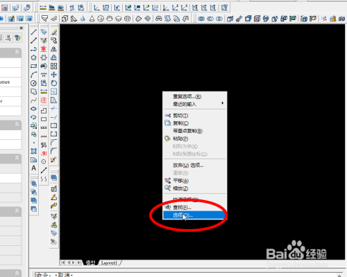 若是还没有显示,我们可在画图界面右击选择选项按钮,如图所示。